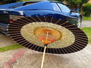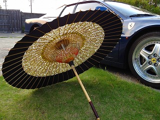 イタリアの跳ね馬に和傘も悪くないですね(自画自賛)。Ferrariという最高級の芸術作品から和傘をさして出てくるなんてまさにアートの塊りです。